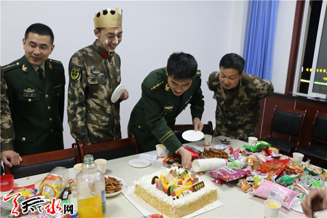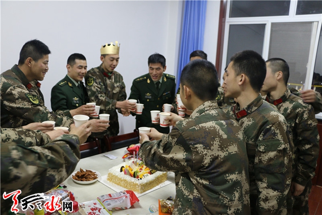 情暖警营心系兵欢声笑语过生日——甘谷中队为战友举办生日会