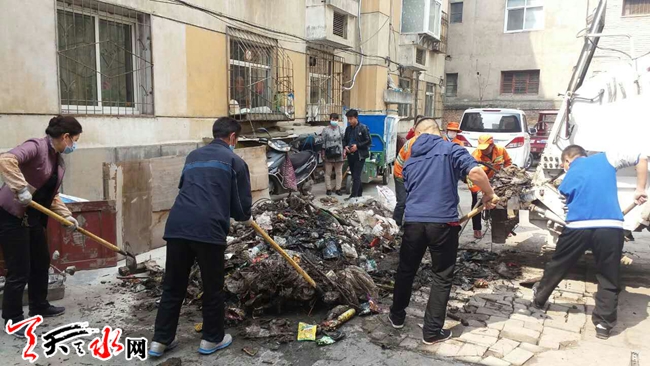 天天天水网讯 【通讯员刘丽霞】为了进一步提升环保质量,加大环境卫生治理力度,使“三城联创”创建工作更加深入。近日,秦州区东关街道十方堂社区组织居民对辖区酒厂家属院楼栋夹角死角地卫生进行了清理整顿,社区干部、居民、环卫工作人员共40余人参加了清理。