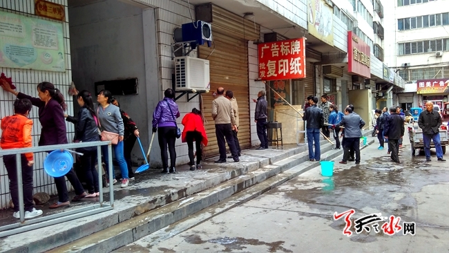 天天天水网25日16时讯【记者 蔚军平】4月25日,秦州区中城街道绿色市场社区组织社区工作人员、部分居民开展了环境卫生大扫除活动。