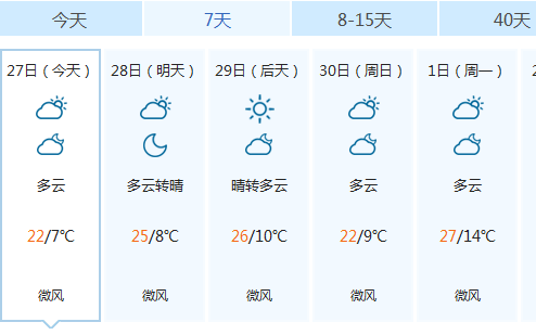 4月26日,记者从天水市气象台了解到,“五一”小长假3天时间以多云天气为主,城区的最高气温为23~25℃,最低气温为6~12℃,期间并无明显的冷空气活动,温度适中。
