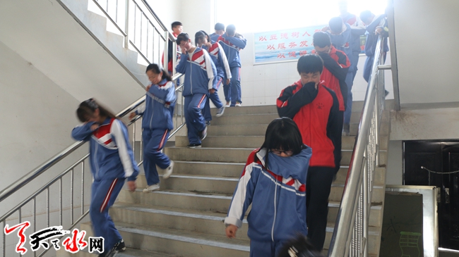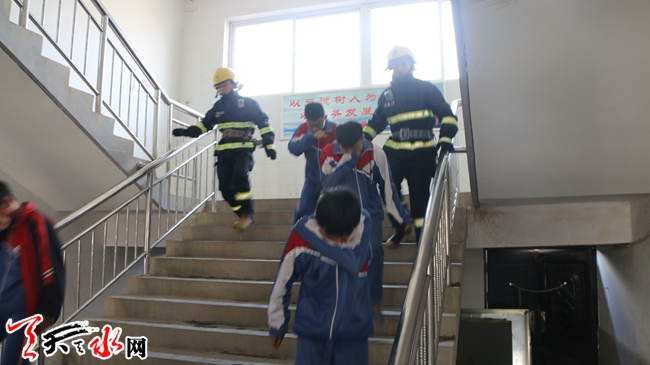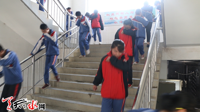 当天上午10点钟,火灾警报声响起,消防逃生疏散演练开始。只见教学楼内“浓烟滚滚”,学校广播喇叭发出火警广播,“同学们请注意,学校发生火灾,请同学们迅速撤离教学楼。”在老师和学生会成员的引导下,学生们用湿毛巾紧捂口鼻,低头弯腰,按照疏散预案设计的顺序,依次从各个楼梯有序疏散。整个疏散过程紧张、有序,短短2分40秒,全校师生全部疏散到了指定的安全地点,并及时清点汇报人数。