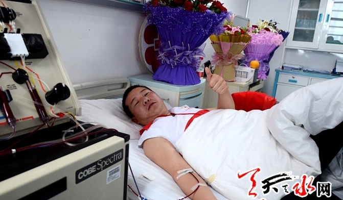 天天天水网讯 3月15日,在第四军医大学唐都医院里,经过4个多小时的血液采集分离,来自清水县的李宏伟顺利捐献出190毫升造血干细胞混悬液,成为天水市首例造血干细胞成功捐献者,成功挽救了一个年轻的生命。( 详细报道《《《 )