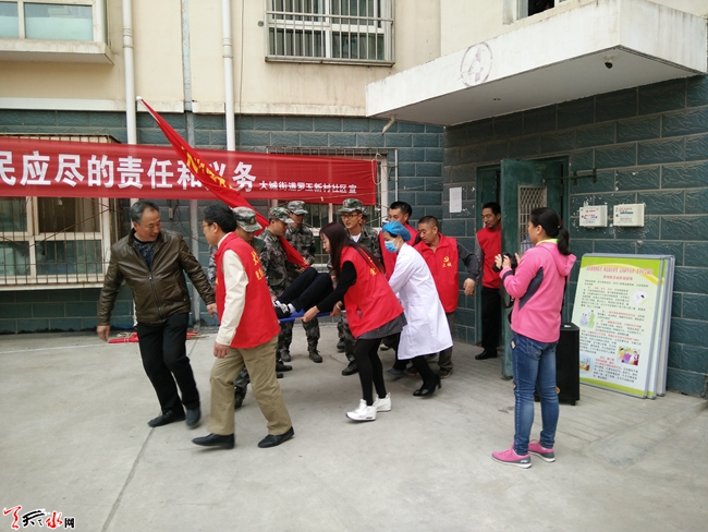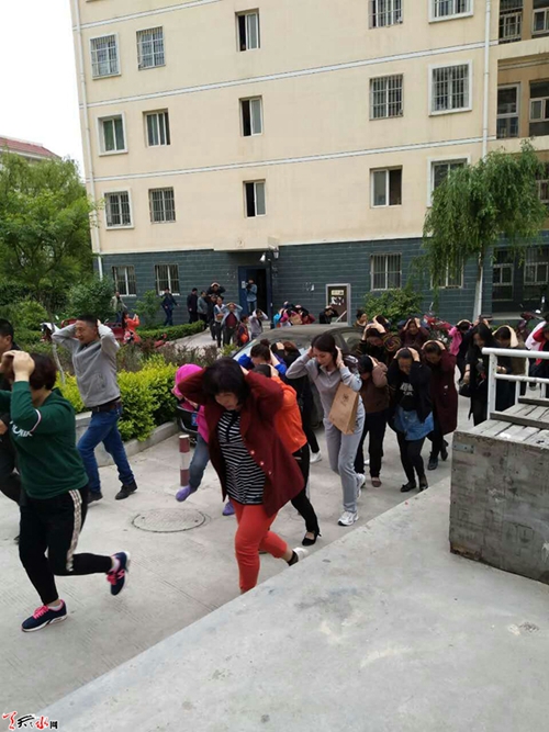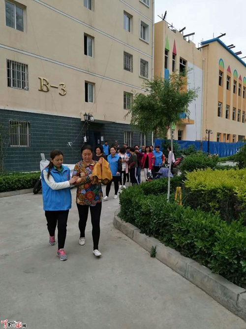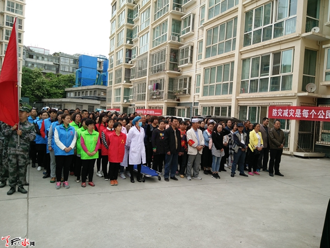 5月17日,秦州区大城街道办罗玉新村社区组织社区党员、居民、辖区单位共计300多人,参加社区开展的防震减灾应急疏散演练,旨在提高居民面对自然灾害时的防范意识和掌握应紧急防护措施和方法,验证街道社区面对灾难时的应对能力。天天天水网网记者 邵兰霞 摄