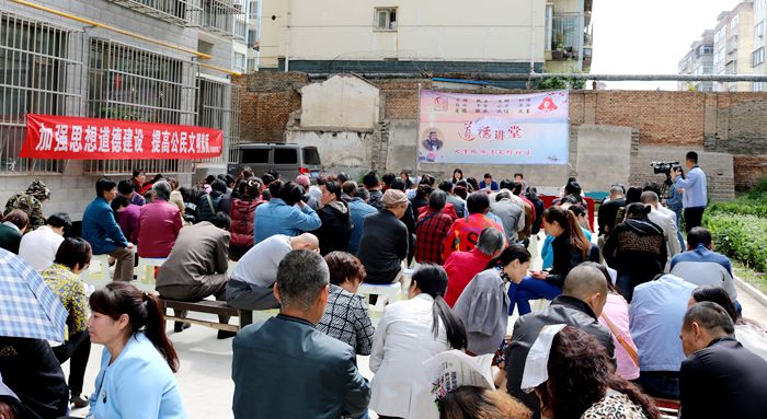 5月19日,秦州区七里墩街道长控社区举办了本年度第一期道德讲堂活动,邀请有关专家为辖区上百位居民群众讲述了《公民道德》讲堂课。