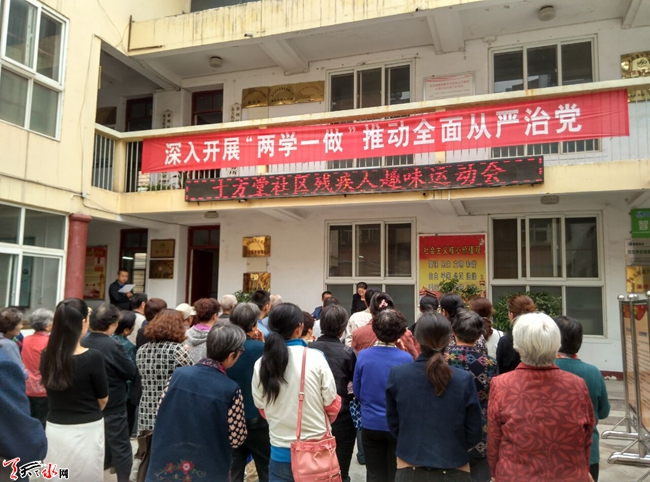 天天天水网讯【通讯员刘丽霞】为了丰富残疾人文化生活,营造残健融合的良好社会氛围,促进各项残疾人工作在基层深入开展。5月19日上午,秦州区东关街道十方堂社区举办了以“关心帮助残疾人,实现美好中国梦”为主题的趣味运动会,辖区残疾人、监护人和部分居民、干部共计70多人参加了运动会。