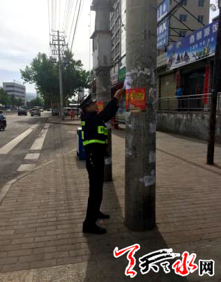 清理岷山路乱张贴100余处,乱吊挂条幅10余次,清理羲皇大道乱张贴200余处,乱吊挂条幅6条。劝导经营户自行进行清理,对据不改正的违章户将对其依法进行行政处罚。加强城市市容市貌管理,不断提升城市形象。