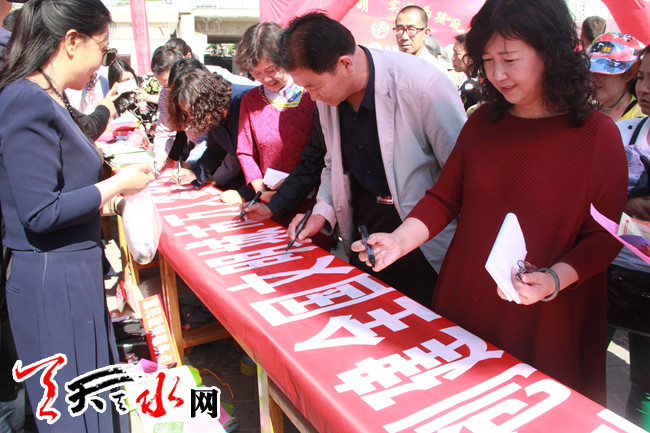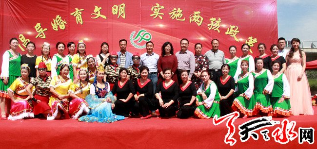 天天天水网讯(通讯员李月华)为倡导文明进步婚育新风尚、传播全面两孩实施政策,5月26日上午,天水郡街道及天水郡计生协会在瀛池大桥藉河风情线举行秦州区启动仪式暨纪念中国计生协会成立37周年活动,天水市卫计委副主任蒋爱勤等一行人,街道全体领导干部、社区干部和居民群众,约700多人参加了此次活动。
