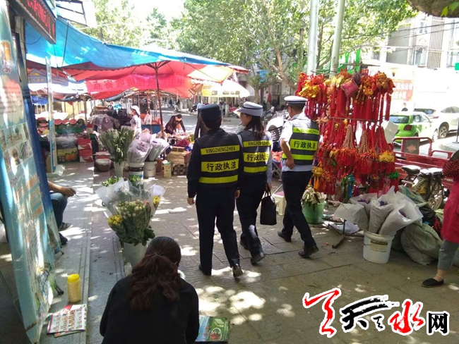 天天天水网讯 【通讯员 靳雪萍】为打造整洁有序的城市环境,营造欢乐祥和的端午节假日氛围。秦州区执法局玉泉中队对辖区内的流动摊点、店外经营、乱堆乱放等影响市容市貌等现象开展为期一周的集中整治行动,确保节日期间市容环境的常态化。