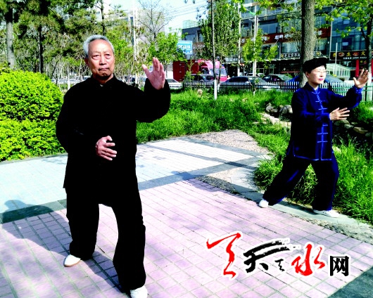 据老人讲,他从我市一企业退休,在12岁上初中时就跟着学校的校长学习太极拳。“我从小身体不好,患有先天性心脏病,几十年练功习武使我的身体素质不断得到增强。”老人年轻时为了强体健身练过长拳、太极推手、棍棒、流星槌等,但主要还是打太极拳。那时每天早晚都要打一套拳,还经常代表天水市参加省内外的比赛,曾获得过全省太极推手的冠军。“打太极心态要自然,不能太刻意追求,功到自然成,经常练习,强身的效果就会慢慢显现。”