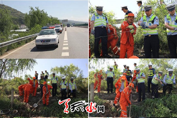 为创造安全、有序、畅通的高速公路交通环境,针辖区沿线太京、籍口段老百姓摆摊设摊点兜售水果严重影响交通安全的实际情况,6月6日上午,副大队长逯彦晓带领民警联合路政、高速养护部门开展了沿线隐患整治行动,同时邀请天水市电视台随警作战。大队组织民警、路政和养护部门人员,针对果农集中摆摊设点沿线的高速公路防护网进行修补加固,以防止果农进入高速公路。整治期间,民警就高速公路沿线兜售水果造成的交通安全隐患对果农进行安全提示,并告诫果农禁止在高速公路上兜售水果,严禁破坏公路防护设施,违者将严格按照相关规定进行处罚。