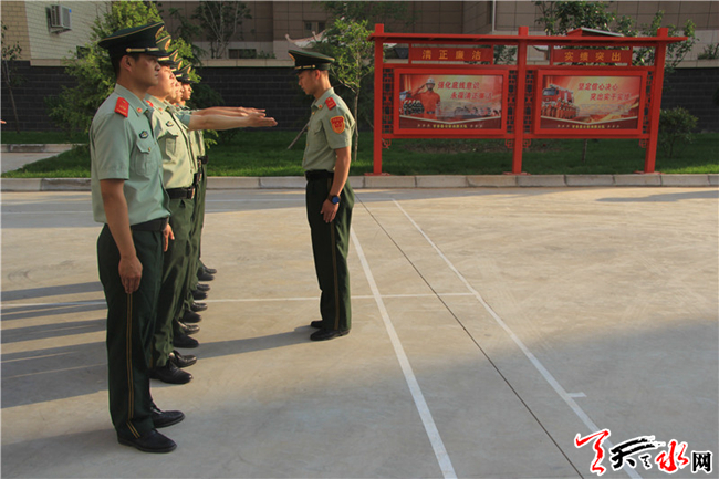 天天天水网讯(通讯员王形 安端)为强化官兵纪律意识,切实提升官兵优良作风及军人形象。6月12日,甘谷中队以换装为契机,组织全体官兵进行警容风纪大检查及队列训练。训练前,值班班长首先组织全体官兵开展了一次警容风纪大检查,规范官兵着装,严格警容风纪,确保部队警容严整、秩序正规。