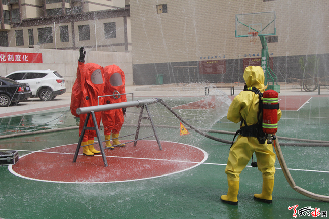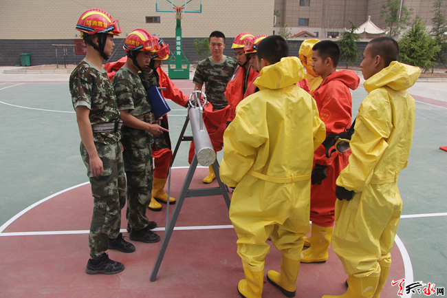 天天天水网讯(通讯员 安瑞) 为进一步加强辖区消防保卫工作,强化官兵危化品处置能力,甘谷中队结合部队实际开展危化品泄漏处置操法。