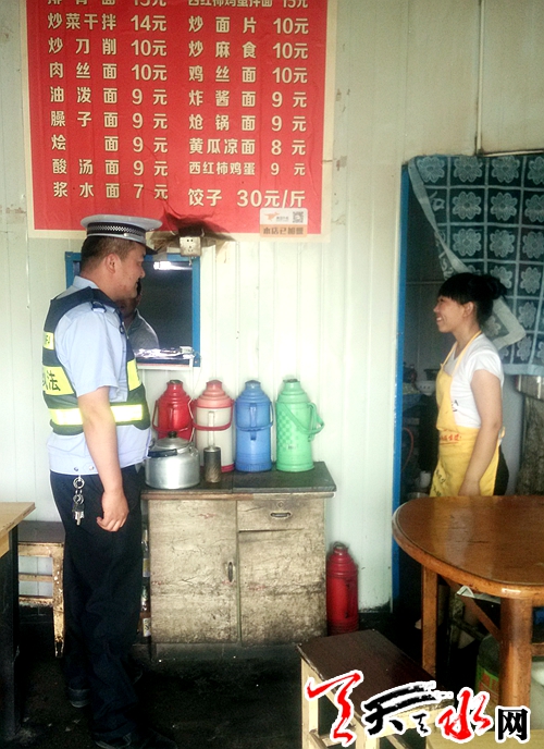 天天天水网讯(通讯员余春江)近期,七里墩中队在执法巡查中发现辖区内有个别餐饮业商户未安装油烟净化设备,随即联合食药监部门对辖区餐饮业商户油烟净化改造情况进行突击检查,检查中发现有11户商户未安装油烟净化设备,即刻对其进行强制整改,责令停业整顿。