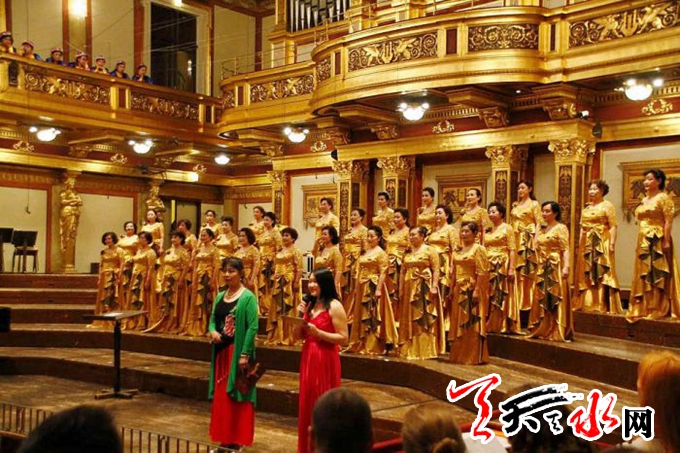 据红霞合唱团团长郭慧丰介绍,红霞合唱团在去年、前年就接到北京夕阳秀中老年文化事业发展基金会的邀请,但因种种原因所限未能成行。今年他们排除种种困难,最终组织了一个三十人的女子合唱队,她们表演了由天水市音乐工作者、天水老年大学副校长李祖武作词作曲的《女人歌》第三乐章《养娃》、《红豆词》和中国经典民歌《在那遥远的地方》。“我们到达时已经快傍晚了,第二天下午就到达维也纳金色大厅进行彩排,晚上就是正式演出,老师们很敬业,所以我们更要唱好。拿到金奖出乎大家意料,但观众和评委对于我们的鼓励使我们感到辛苦地排练特别值。虽然去维也纳的十来天里大家都没有时间来倒时差,但都充满活力,直到回来才都觉得累瘫了。”