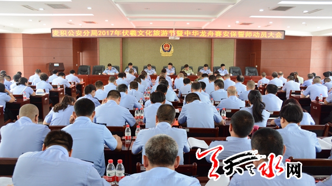 天天天水网讯 6月19日上午,麦积公安分局召开安保誓师动员大会,安排部署2017(丁酉)年公祭中华人文始组伏羲大典暨第28届中国天水伏羲文化旅游节、2017年中国龙舟公开赛(甘肃•天水•麦积站)暨中国•天水•麦积第三届“伏羲杯”龙舟大赛等系列活动安全保卫工作,动员全体民警、辅协警以高昂的斗志、优良的作风、严明的纪律迅速进入安保临战状态,以决战决胜的姿态打赢“一节一赛”安保硬仗。