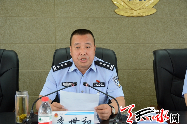 李世和同志要求,思想认识要提高。各参战单位要牢固树立“一盘棋”思想,自觉把思想和行动统一到市区党委政府的战略布局上来,统一到市公安局对安保工作的部署要求上来。工作措施要跟进。一要全警动员,协调警力;二要紧盯方案,靠实责任;三要服从命令、听从指挥;四要严格督察,做好保障。团结协作要加强。全体参战民警要视责任为使命、岗位为战场,进一步细化工作职责、明确目标任务、靠实岗位责任,确保横向到边、纵向到底,形成一个封闭的防控系统,确保各项工作落实到“最后一环”、推进到“最后一米”。纪律作风要严明。要更加注重一言一行、一举一动,警容要严整,执法要规范,展示公安队伍良好形象、提升天水公安工作美誉度。治安管控要到位。一要大力加强巡逻防控工作。二要加强矛盾纠纷排查工作。三要积极消除治安安全隐患。
