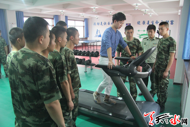 首先,健身教练从理论上讲述怎么进行合理的健身,科学的健身,着重讲解如何避免不科学健身对身体造成的伤害等注意事项;其次,对健身房里的器械进行详细讲解及示范操作,并从如何练习胸部肌肉、腹部肌肉及腿部肌肉等肌肉群进行了详细示范;最后,对官兵在健身过程中的疑惑进行解答。