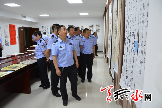 天天天水网讯 在建党96周年来临之际,为讴歌中国共产党96年来革命、建设、改革的光辉历程,丰富警营文化生活,宣传广大公安民警忠诚履职、无私奉献的崇高精神,树立“陇原铁警”的良好形象,激发公安队伍创造力和活力,麦积公安分局党委决定举办“喜迎十九大·翰墨书忠诚”书画展。经过前期的紧张筹备,6月26日,麦积公安分局“喜迎十九大·翰墨书忠诚”书画展正式开展。