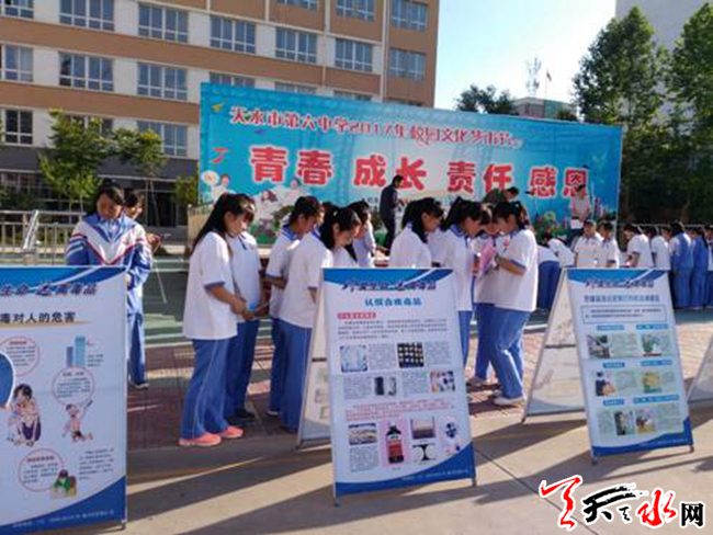 天天天水网讯【通讯员李雨霞】为了进一步加大禁毒宣传力度,使广大人民群众特别是青少年认清毒品的危害,提高识毒、防毒、拒毒、禁毒意识,在6月26日“国际禁毒日”,秦州区东关街道仁和里社区联合天水市六中开展了“禁毒路上 你我同行”为主题宣传教育送禁毒知识进校园活动。