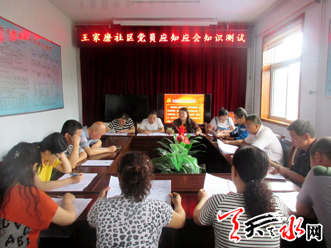 二是组织党员干部开展应知应会基本知识测试。此次测试以党建理论、习近平总书记重要讲话、两学一做等应知应会知识题库为主要内容,测试采取闭卷的形式进行,题型为填空题,通过此次测试,参试党员从思想上进一步认识到应知应会知识的重要性,表示在今后的工作、生活中将加强学习,严格要求自己,自觉履行一名党员的应尽职责。