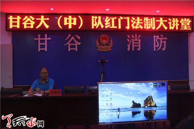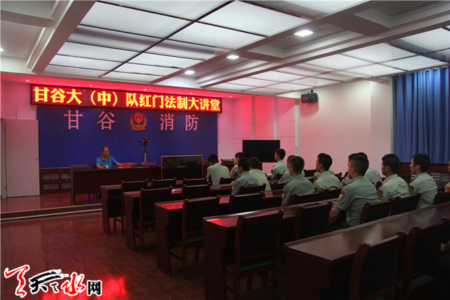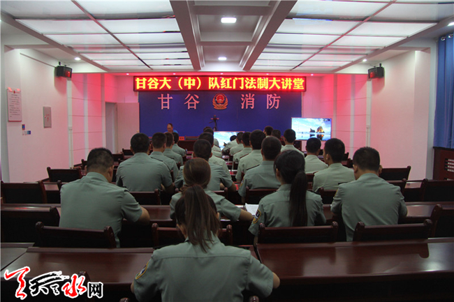 天天天水网讯(通讯员石国乾)为进一步增强全体官兵的法制意识,筑牢遵规守纪的思想根基,努力营造一个“人人讲法纪,人人守法纪”的思想氛围,7月6日晚上,甘谷大(中)队邀请到甘谷县人民检察院院职务犯罪预防科科长王维武同志走进甘谷消防“红门法制大讲堂”,为大(中)队全体官兵上了一堂法制教育课。