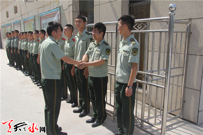 天天天水网讯(通讯员 牛翔宇 安端) “革命军人一块砖,哪里需要哪里搬”。因工作需要,甘谷中队政治指导员石国乾同志即将调往新的工作岗位。7月12日,甘谷大(中)队组织举行了简短而隆重的欢送仪式,以座谈会的形式来欢送石国乾同志,也希望他在新的单位再立新功。