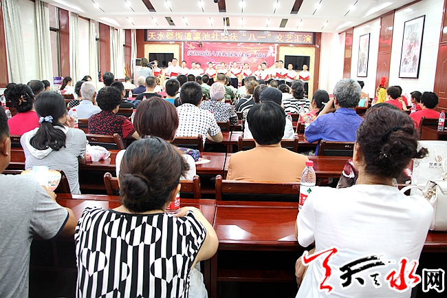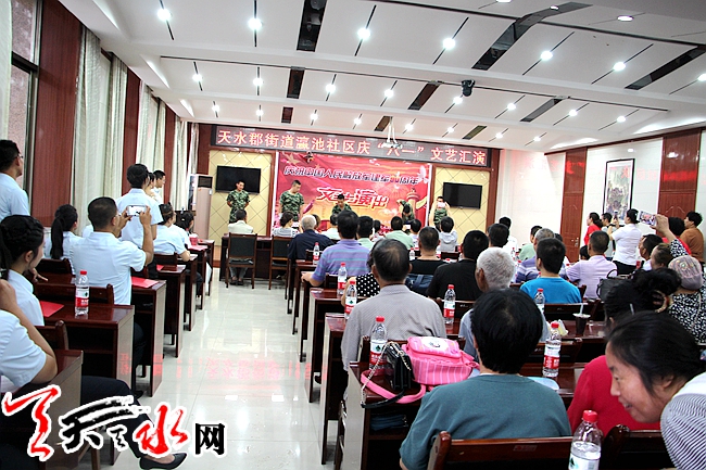 天天天水网讯 “军民共建鱼水情深,拥军爱民再造辉煌”,中国人民解放军建军90周年之际,天水郡街道瀛池社区以最美好的歌声表达心底的声音,用最曼妙的舞姿跳出心中的喜悦。7月27日,瀛池社区举办了庆“八一”文艺汇演,参加本次演出的有辖区单位代表、消防官兵和社区文艺爱好者等。