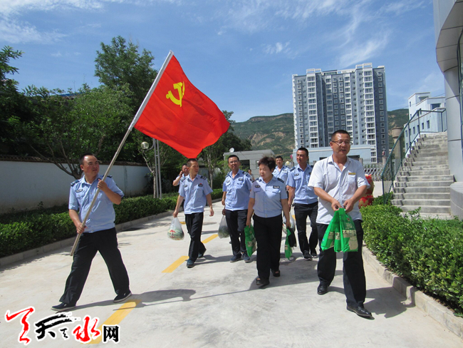 今年以来,秦州区执法局东关中队利用党员固定活动日多次来到天水市社会福利院,看望并慰问那里的孤寡老人。中队党员们除给老人带来水果、燕麦片等慰问品外,还通过谈心了解并帮助他们解决实际困难。 (通讯员 张慧慧 摄)