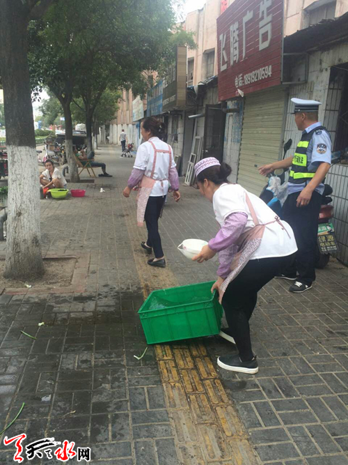 天天天水网讯(通讯员 靳雪萍) 为营造畅安舒美的路域环境,近日,秦州区执法局玉泉中队集中对羲皇大道、藉河南路占道经营进行整治。