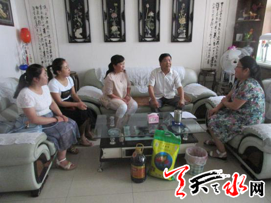 天天天水网讯(通讯员曹彦彦)7月28日下午,“八一”建军节来临之际,天水郡街道王家磨社区组织走访慰问了6户辖区现役军人家属。天水郡街道办事处副主任赵双萍、王家磨社区党委书记吕艳红以及3名社区干部一起进行走访慰问。