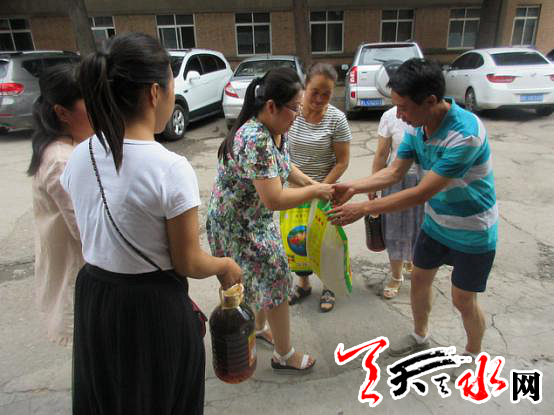 随后,在甘肃省建五公司院内,街道社区领导给王林琦和郭露父母现场发放了大米和食用油等慰问品。