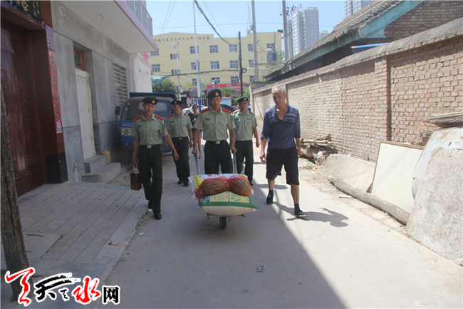 天天天水网讯 在“八一”建军节来临之际,为进一步密切警民和谐关系,弘扬消防部队的优良传统,全面深化党的群众路线活动,7月31日下午,甘谷中队官兵在执勤训练忙碌之际,带着米、面、油等生活用品、慰问品,走访看望了驻地贫困家庭,送上中队官兵们的深切问候和关心。