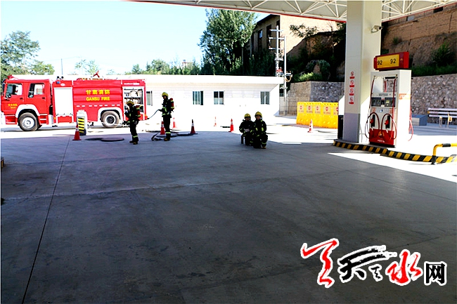 天天天水网讯(通讯员:王龙)为有效提高甘谷消防中队处置易燃易爆场所火灾的能力,强化官兵战备意识。8月15日,甘谷消防中队深入辖区安远加油站开展“六熟悉”及灭火救援实战演练。