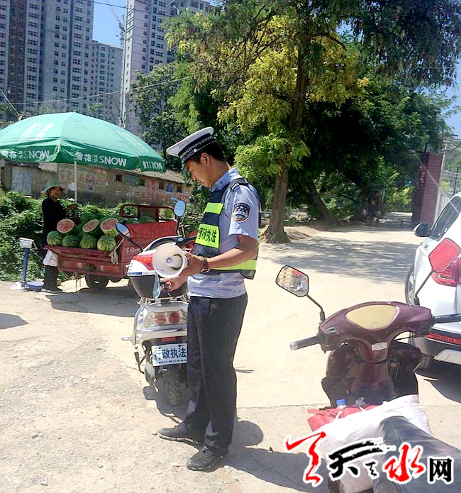 天天天水网讯(通讯员 靳雪萍)近日,秦州区执法局玉泉中队根据《关于进一步加强社会生活噪音扰民整治工作的通告》,积极召开会议进行研究部署,对主次干道沿街商铺、流动摊点利用高分贝噪音揽客等违法行为进行全面动员整治,及时纠正沿街商铺、流动摊贩噪音扰民问题,积极打造和谐城市环境。