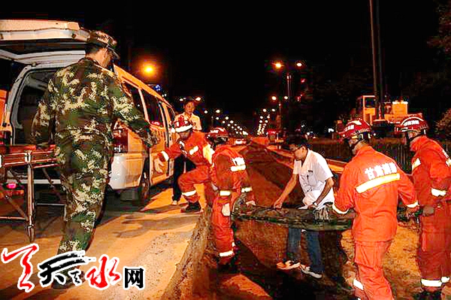 天天天水网讯 8月11日22时39分,天水支队指挥中心接到报警称位于天水市秦州区伏羲中学门口由于施工场地坍塌导致一名工人被埋压,请求救援。接警后,支队指挥中心立即调派辖区天水郡中队两车12人赶赴现场。