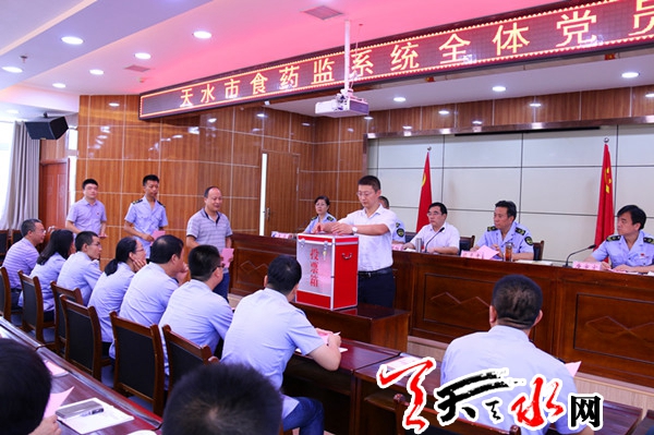 天天天水网讯 8月18日上午,天水市食药监系统召开全体党员大会,市直机关工委副书记魏国柱出席会议,市食药监系统党员共53人参加了会议。