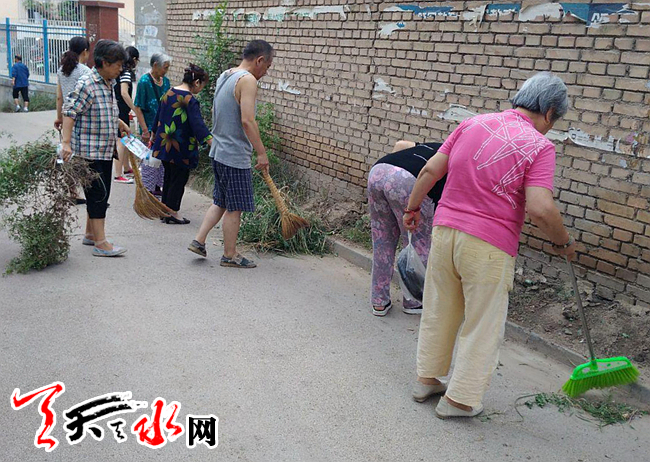 天天天水网讯(通讯员曹彦彦)为进一步落实我市全域无垃圾创建工作的实施,8月18日,天水郡街道王家磨社区积极行动,组织辖区单位、居民、社区志愿者120余人深入到辖区对辖区、居民死角进行清扫,捡拾白色垃圾,清理街头“牛皮癣”等清洁活动。