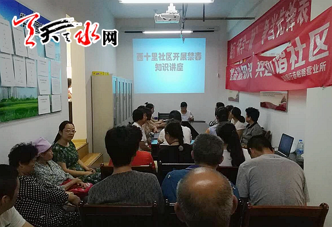 天天天水网讯(通讯员李小霞)为了进一步提高辖区居民的防毒、拒毒意识。8月18日,天水郡街道西十里社区组织辖区居民开展了一场禁毒知识讲座活动。
