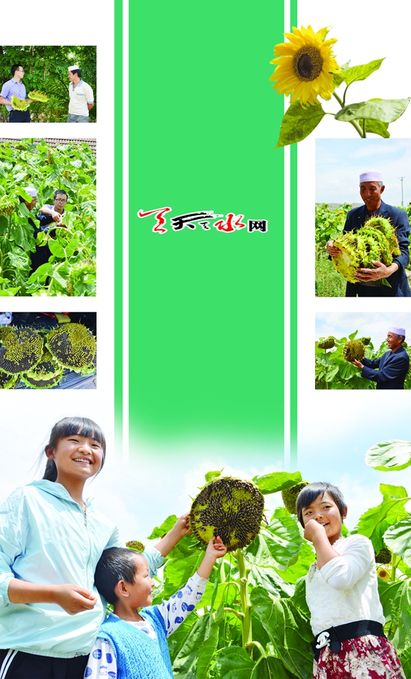 近日,记者一行驱车来到张家川县川王镇南部的一个自然村——毛寨村。到达目的地后,大片的葵花地闪耀着金黄色的光芒,让人不得不驻足观赏一番。田间地头,到处弥漫着葵花的香味。