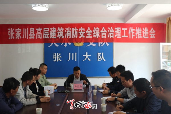 天天天水网讯(通讯员余小龙)8月31日下午,在张家川县公安消防大队组织召开张家川县高层建筑消防安全综合治理工作推进会,副县长马国杰,、县公安局、县住建局、县房管局负责人及各高层建筑物业公司消防管理人员参加会议,会议由县公安局副局长付建军主持。