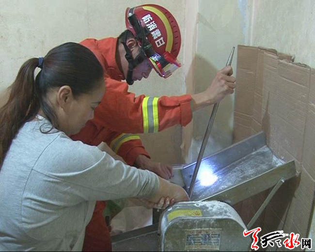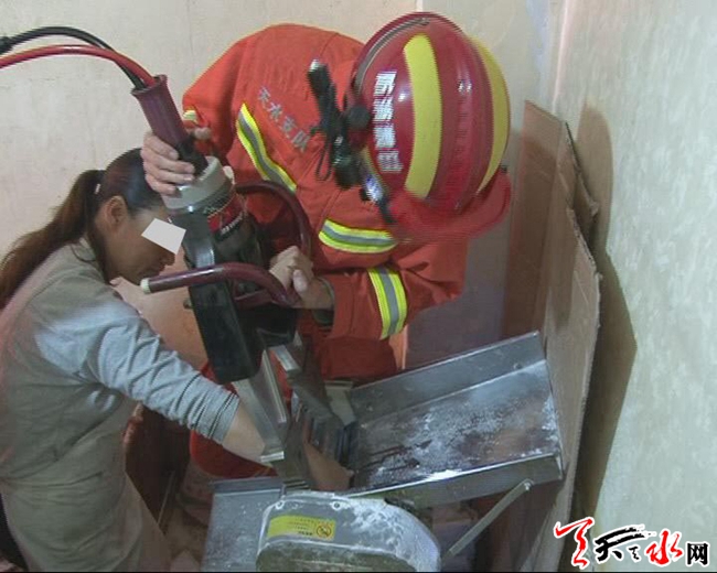 天天天水网讯【记者蔚军平 通讯员胡升飞】9月10日,麦积区一餐饮店的一名女员工在操作压面机过程中,其右手不慎被卡在压面机的滚轴之间,经过消防官兵积极施救,女员工得以脱险。