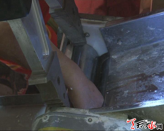 9月10日14时20分,麦积消防中队接到市119指挥中心命令,称在麦积区金都商厦附近,一面馆女店员的右手不慎被压面机卡住,急需救援。接警报警后,麦积消防中队6名官兵随即赶往现场处置。
