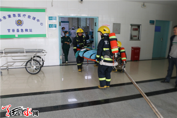 天天天水网讯(通讯员 王龙)为切实提升中队官兵灭火救援能力,强化官兵执勤战备意识。9月13日上午,甘谷中队对辖区重点单位甘谷县人民医院开展熟悉演练。