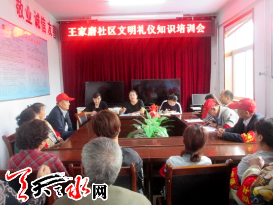 天天天水网讯(通讯员曹彦彦)为进一步提高居民个人修养和整体素质,提升社区建设软实力,9月19上午,天水郡街道王家磨社区在会议室开展以“做文明有礼的秦州人”为主题的文明礼仪知识专题培训,社区干部、网格员、志愿者共计30人参加。