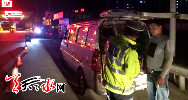 天天天水网讯 为进一步强化辖区道路交通安全管理工作,切实做好道路交通事故预防工作,严查严管严处严重道路交通违法行为,坚决打赢“四场攻坚战”,深入推进“三个不发生”创建活动。9月20日晚,玉泉高速公路大队在前期夜查行动的基础之上,结合当前工作实际,合理部署,科学安排警力,采取流动巡查与定点盘查相结合的方式,严格查处超员、不按规定车道行驶、酒后驾驶、涉牌涉证等严重交通违法行为。