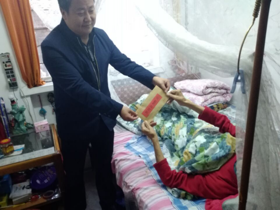 天天天水网讯(通讯员 缑文婷)中秋节是中国人心中非常重要的传统节日,也是一家团圆的美好时刻,然而,不是所有的家庭都能享受到亲人相聚的融融欢乐,对于那些空巢老人们而言,他们孤单的心灵在这个时候更需要抚慰。为了继承与弘扬中华民族尊老爱老的传统美德,营造全社会尊老、敬老、爱老的浓厚氛围,在中秋佳节来临之际,七里墩街道党工委副书记张小刚和长开社区书记来到社区空巢老人白鹤升的家里。