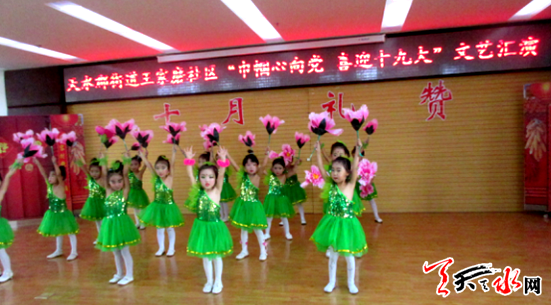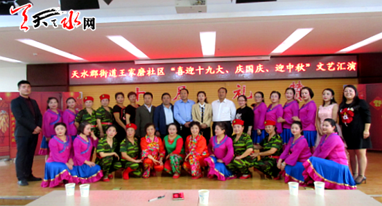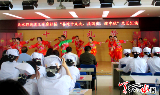 天天天水网讯(通讯员曹彦彦)为喜迎十九大营造喜庆氛围,丰富群众文化生活,在国庆、中秋佳节即将来临之际,天水郡街道王家磨社区于9月29日下午在天水市第三人民医院举办“喜迎十九大庆国庆、迎中秋”文艺演出,让全社区群众过一个欢乐祥和、幸福美满的国庆和中秋佳节。