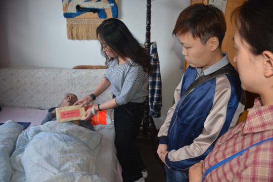 在走访慰问中,长开社区主任亲切地与走访的困难居民交谈,了解他们的日常生活以及身体近况,其中,常天然是一位有着35年党龄的80岁老党员,他患有老年痴呆症,生活不能自理,靠老伴照顾,老伴没有退休金,老两口经常吃药,生活困难,加上儿女都在外地工作,“每逢佳节倍思亲”,社区鼓励他要勇敢面对困难,树立生活信心,并向他送上慰问金表达了一片心意,最后祝福他们全家幸福。