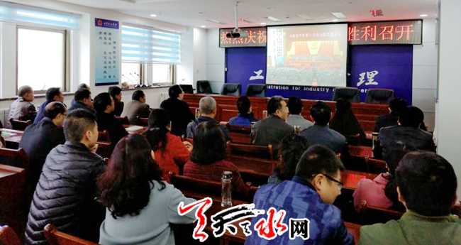 天天天水网讯 【通讯员 安超平 任国强】2017年10月18日,举世瞩目、全球关注的中国共产党第十九次全国代表大会胜利召开。天水市工商局党员干部和职工精神抖擞,认真观看十九大开幕式盛况。