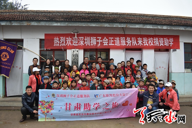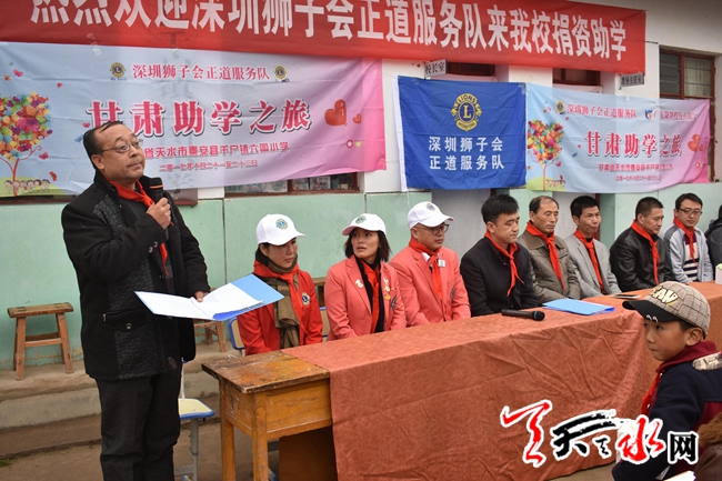 天天天水网讯 2017年10月19日,深圳狮子会正道服务队携大爱兰海基金会赴秦安县千户镇六图小学为贫困山区孩子捐赠爱心电教室。这是千户镇六图小学继兰海商贸城大爱基金会连续两年捐赠之后,在爱心人士刘铁妹女士的积极倡导和协调之下的又一次大型捐赠活动。参加这次捐赠活动的有:深圳市狮子会正道服务队2017-2018年度会长李学刚,深圳市狮子会正道服务队2017-2018年度财务长韩红华,深圳市狮子会正道服务队2017-2018年度甘肃省秦安县六图小学助学项目执行主席刘铁妹,兰海商贸城大爱基金会副会长郑青松、孙青,部门丁主任,秦安县教体局相关负责人,千户学区负责人及六图小学全体师生和部分家长100余人。